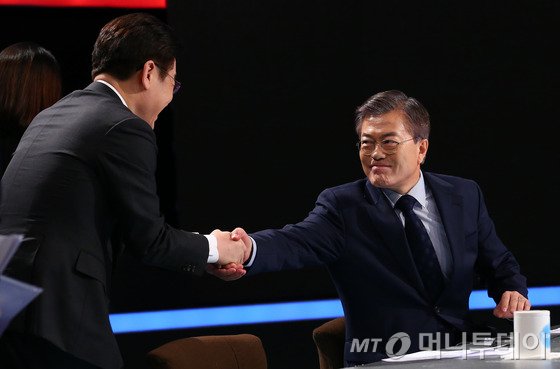 ´õºÒ¾î¹ÎÁÖ´ç ´ë¼±ÁÖÀÚÀÎ ¹®ÀçÀÎ Àü ´ëÇ¥¿Í ÀÌÀç¸í ¼º³²½ÃÀåÀÌ 21ÀÏ ¿ÀÈÄ ¼¿ï ¸¶Æ÷±¸ »ó¾ÏMBC¿¡¼ ¿¸° 100ºÐ Åä·Ð ³ìÈ¿¡¼ ¾Ç¼öÇϰí ÀÖ´Ù. (±¹È¸»çÁøÃëÀç´Ü)2017.3.21/´º½º1 |